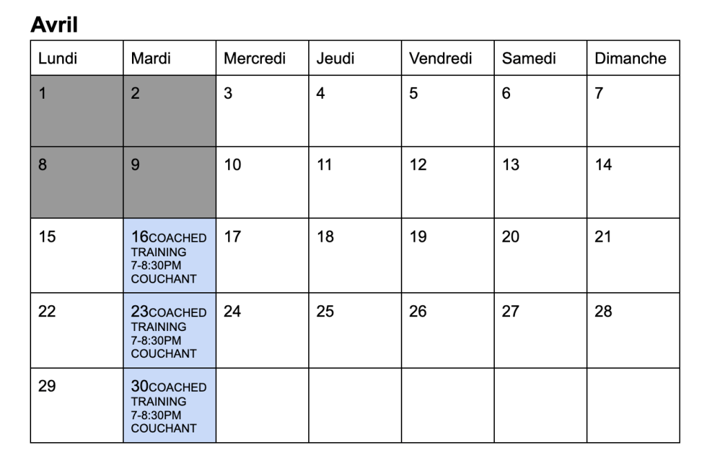 Tuesday/Mardi 19h00 – Couchant